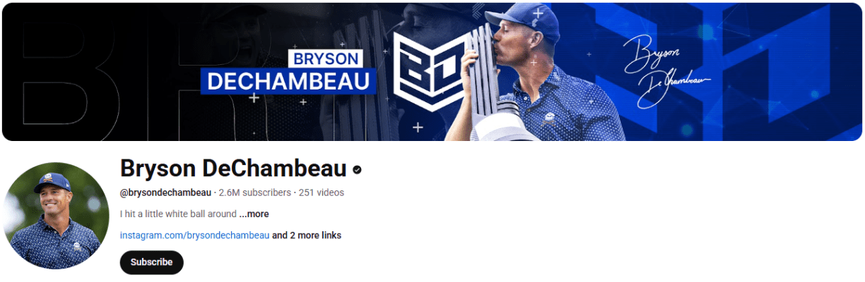 - Overview: American professional golfer Bryson DeChambeau has his own YouTube channel that boasts quite a following. Here, he shares an inside peek into his life and everyday training as a professional golfer — as well as unique challenges and videos where he and other famous athletes attempt to break course records and achieve other feats.
