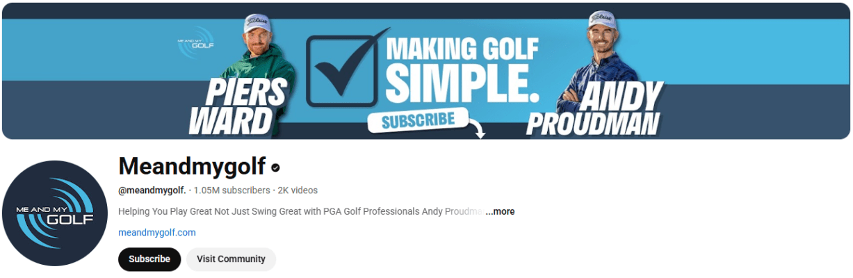 - Overview: Me and My Golf is a popular golf instruction channel on YouTube that is run by PGA professionals Andy Proudman and Piers Ward. These professionals have collectively taught thousands of golf lessons, also taking to YouTube to make instruction more accessible and build a sense of community.