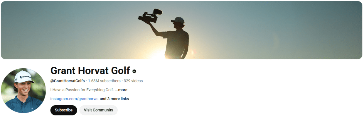 - Content Focus: High-quality golf videos, including challenges, collaborations, and instructional segments known as “Grant Horvat Teaches”.